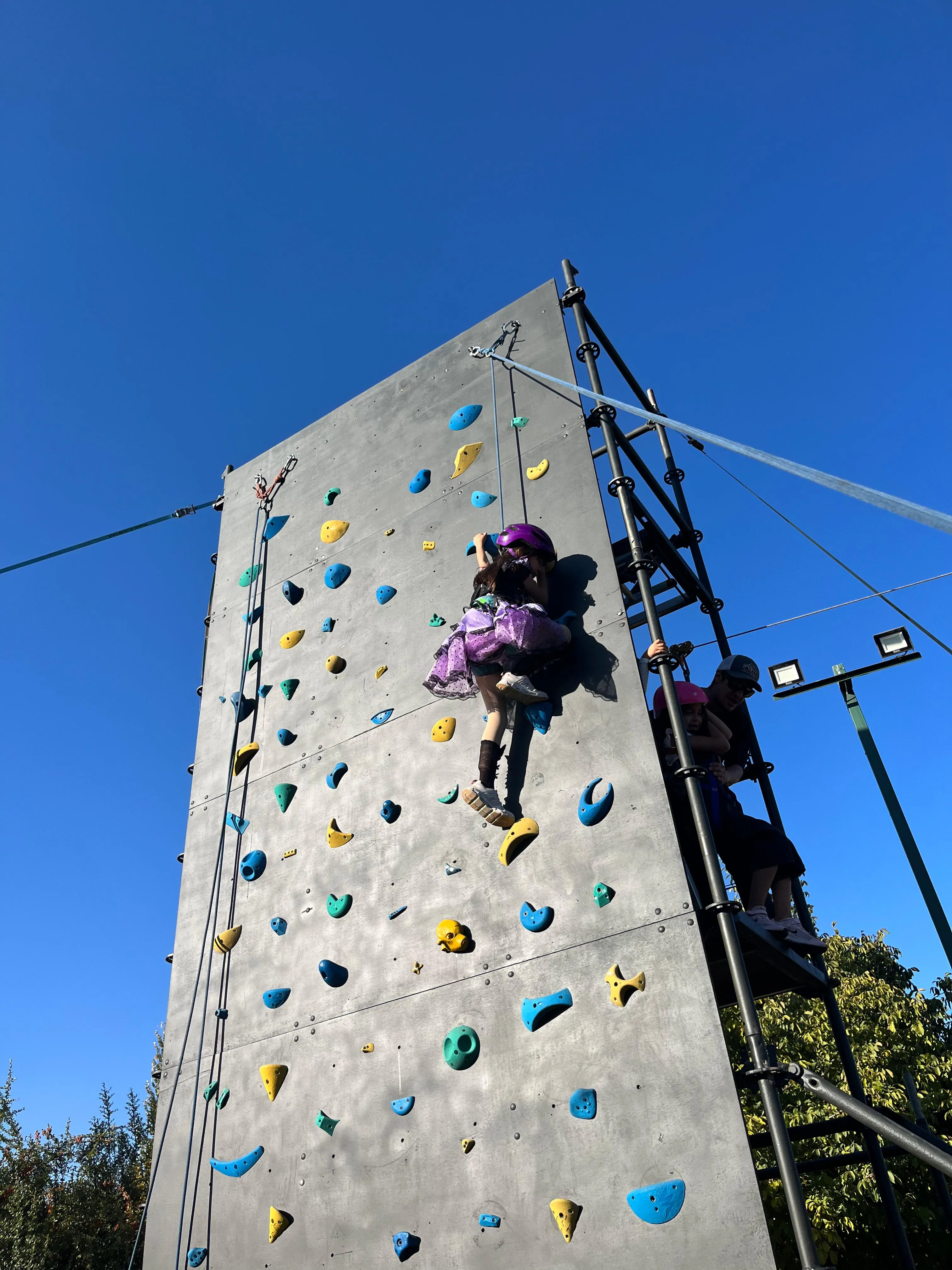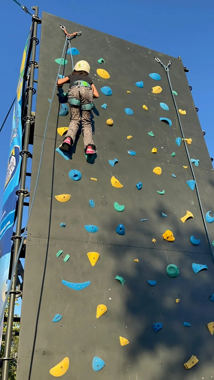Actividad familiar recreativa con muro de escalada seguro y divertido